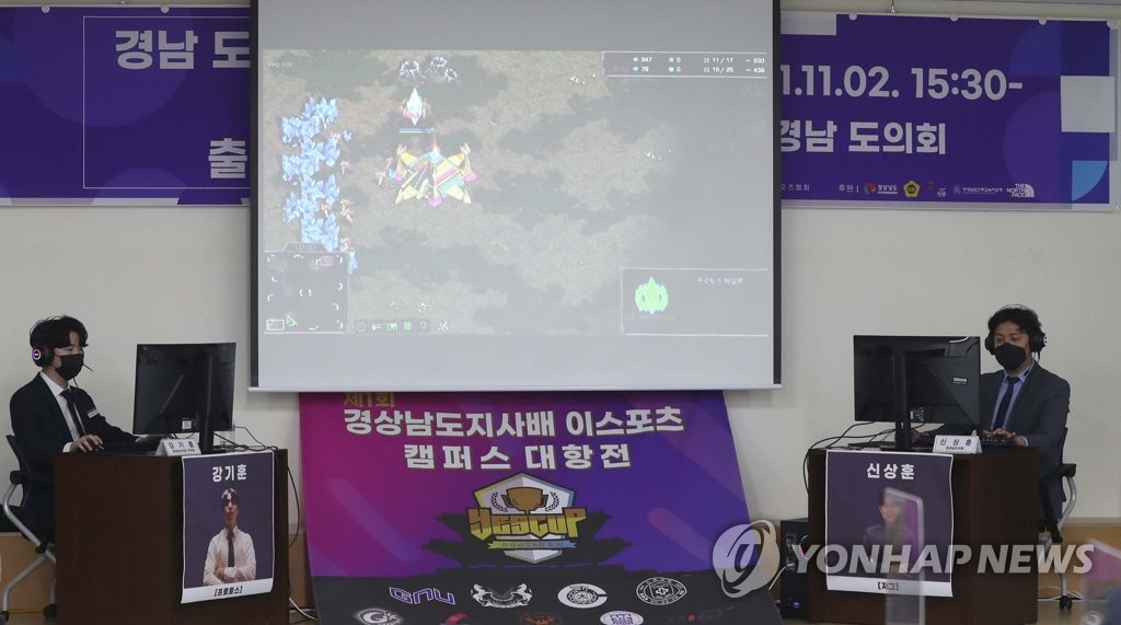 | ▲ 도의회에서 스타크래프트 11월 2일 경남도의회 대회의실에서 프로게이머 연습생 출신 강기훈(왼쪽) 속기사와 신상훈 도의원이 e스포츠 활성화를 위해 스타크래프트 이벤트를 진행하고 있다. [연합뉴스 자료사진] |