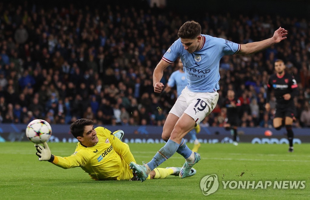 맨시티는 이날 공식전 22골(프리미어리그 17골·UCL 5)의 가공할 득점력을 자랑하는 홀란 없이 세비야를 상대했다.