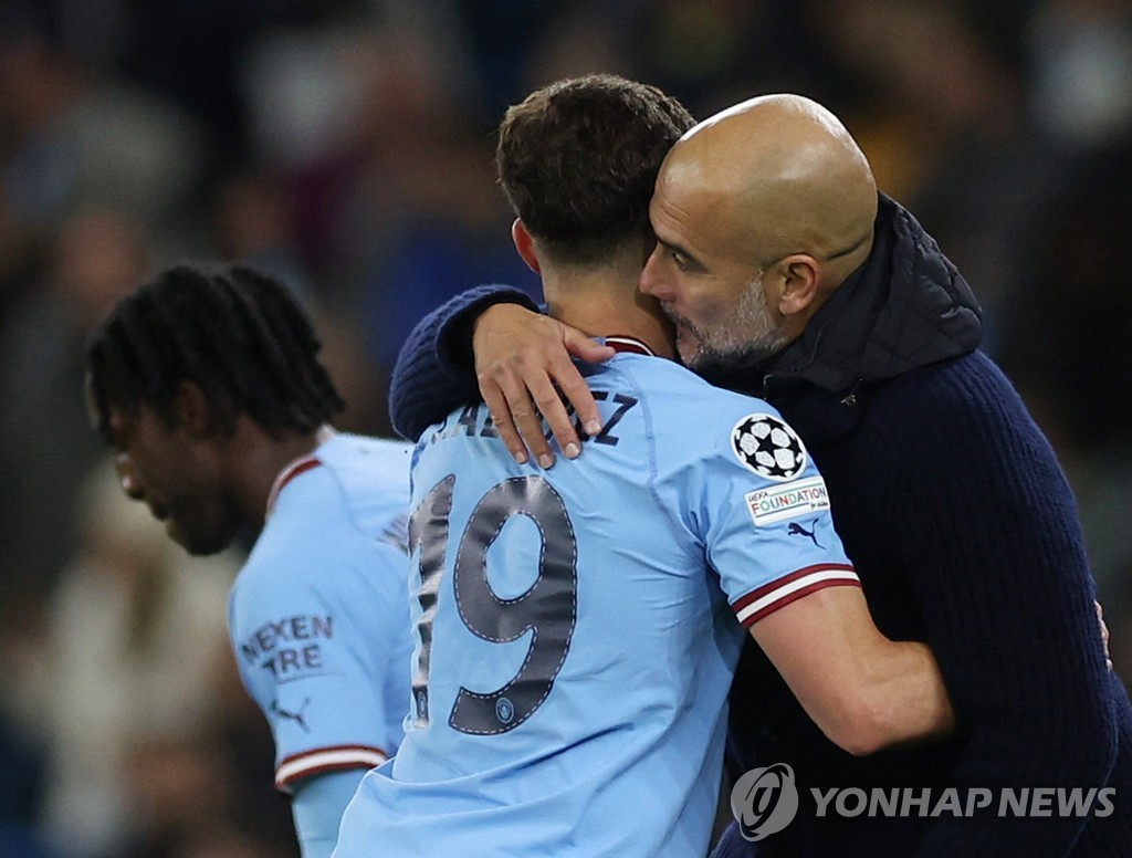 | ▲ 알바레스 포옹하는 과르디올라 감독 [로이터=연합뉴스] |
