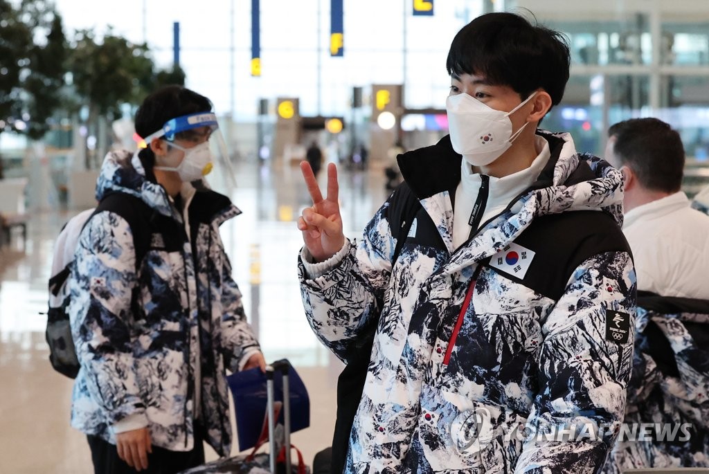 | ▲ [올림픽] 가자 베이징으로 (영종도=연합뉴스) 한상균 기자 = 베이징동계올림픽 한국 피겨 대표팀 이시형이 3일 오전 인천공항에서 출국 전 기념촬영을 하고 있다. 왼쪽은 차준환. 2022.2.3 xyz@yna.co.kr |