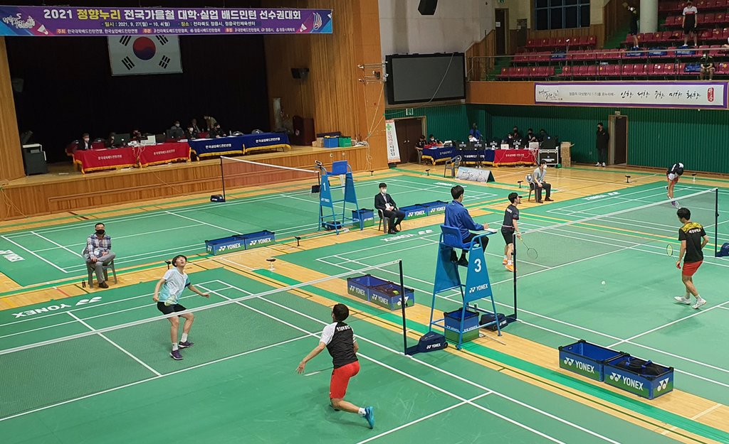 | ▲ 정향누리 전국 배드민턴 대회 (정읍=연합뉴스) '정향누리 전국 가을철 종별 배드민턴 선수권대회'가 지난달 27일부터 이달 4일까지 전북 정읍시 국민체육센터에서 열렸다. 2021.9.27 [정읍시 제공. 재판매 및 DB 금지] photo@yna.co.kr |