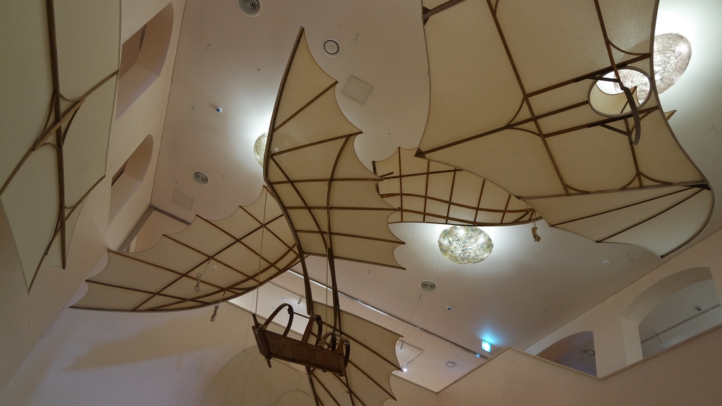 | ▲ 다빈치 전시관에 설치된 전시품 레오나르도 다빈치의 설계도를 바탕으로 제작한 비행기. |