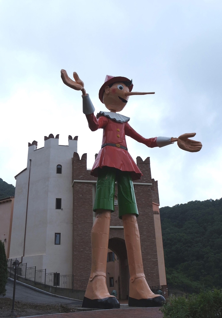 | ▲ 성 입구에 자리한 피노키오 동상 이탈리아 콜로디 재단의 공식 피노키오 마스코트를 변형시켜 만든 동상으로, 크기가 10.8m에 달한다. |