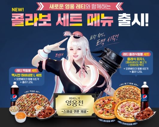 16일 식품업계에 따르면 미스터피자는 지난달 넥슨코리아의 RPG(역할수행게임) '마비노기 영웅전'과 협업해 이 게임의 신규 캐릭터 '레티'의 출시를 기념하는 세트 메뉴를 선보였다.