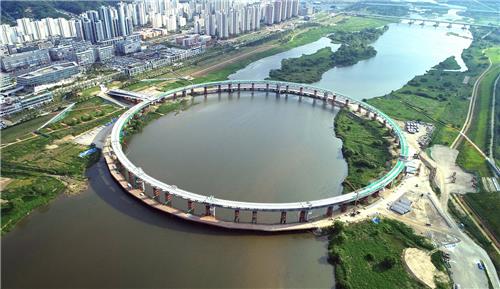 LH가 2018년 7월부터 1천80억원을 들여 건설한 이 교량은 총연장 1천446m, 폭 12∼30m의 복층 원형 다리다.