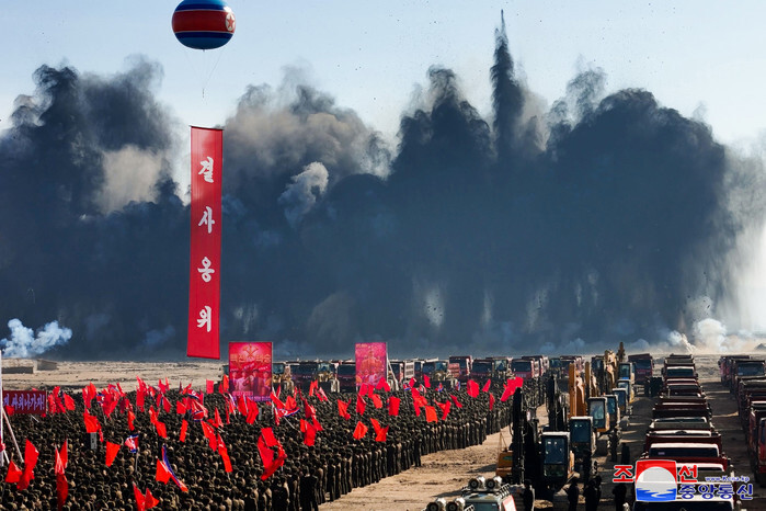 A groundbreaking ceremony is held for a 450-hectare greenhouse farm and vegetable science research base in Sinuiju, North Pyongan Province, on Feb. 10, 2025, in this photo released by North Korea's official Korean Central News Agency the following day. The North's leader Kim Jong-un attended the ceremony. (For Use Only in the Republic of Korea. No Redistribution) (Yonhap)