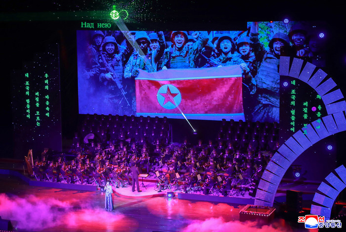 A Korean singer performs after North Korean leader Kim Jong-un met with Russian Culture Minister Olga Lyubimova at the headquarters of the Party Central Committee in Pyongyang on June 29, 2025, in this photo released by the North's official Korean Central News Agency the next day. A delegation of the Russian Culture Ministry, led by Lyubimova, visited the North Korean capital to mark the first anniversary of the establishment of the treaty on a comprehensive strategic partnership between the two countries. (For Use Only in the Republic of Korea. No Redistribution) (Yonhap)