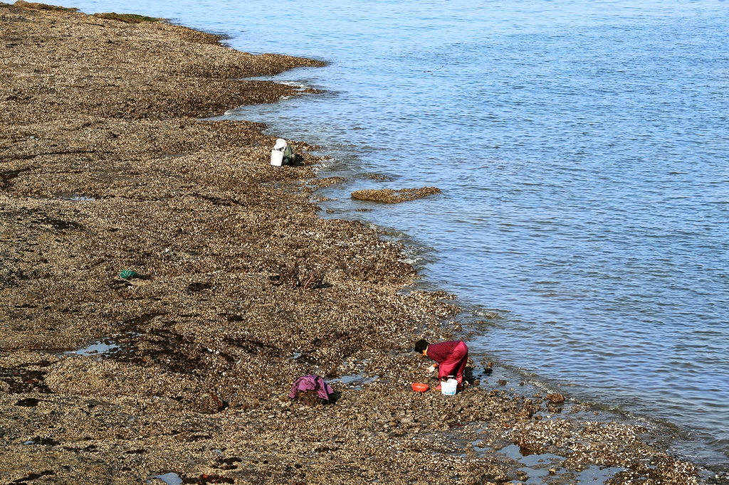 | ▲ 자연산 굴을 채취하는 죽도 주민들[사진/조보희 기자] |