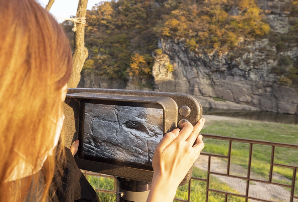 100m 거리에 있는 전망대에서 전자 망원경을 통해 암각화를 바라볼 수밖에 없다.