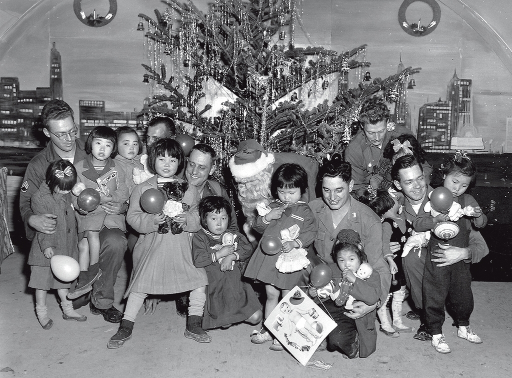 | ▲ 한국전쟁에 참전한 미군들이 부산의 보육원에서 어린이들에게 선물을 나눠주고 있다. 1951년 [국가기록원 제공] |