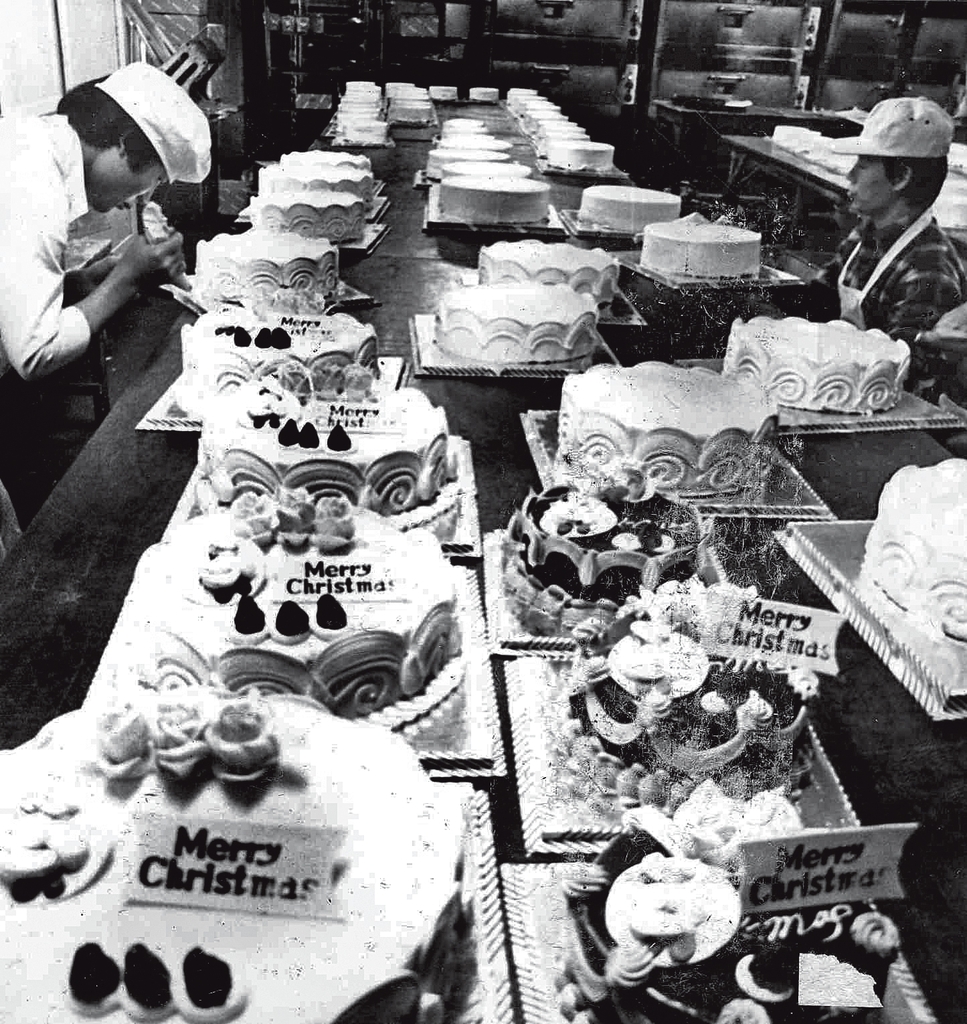 | ▲ 크리스마스를 앞두고 쉴 새 없이 케이크를 만드는 제과 공장. 1977년 [연합뉴스 자료사진] |