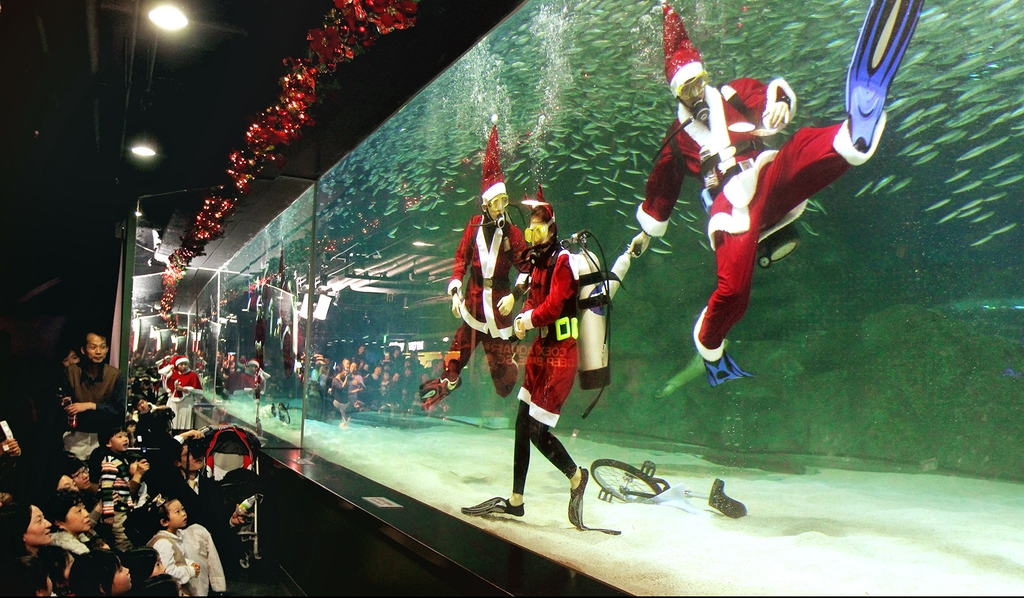 | ▲ 서울 코엑스 아쿠아리움에서 산타 다이버가 정어리 떼와 멋진 쇼를 보여주고 있다. 2010년 [연합뉴스 자료사진] |