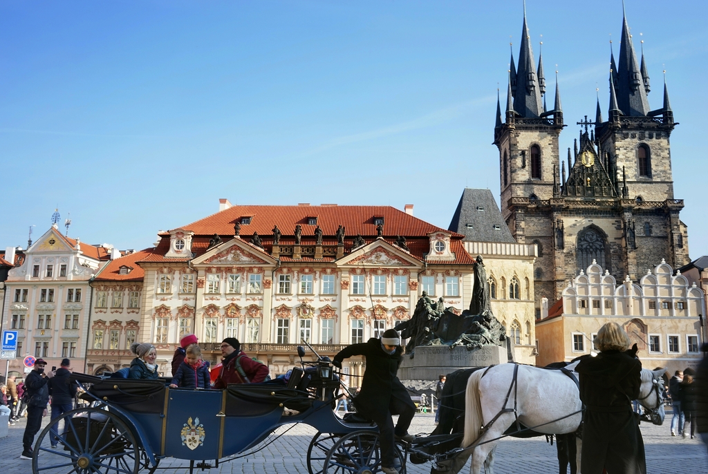 ▲ 옛 시가지광장에서 마차를 탄 가족 관광객 [사진/진성철 기자]