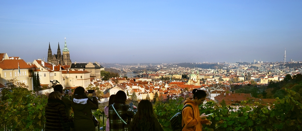 언덕 위에 자리한 프라하성과 흐라드차니 광장에서 프라하 시내를 내려다봤다. 블타바강과 카를교, 구시가지 성당과 탑들이 한눈에 들어온다. 프라하성 근위병의 교대식을 구경하는 사람들도 보인다.