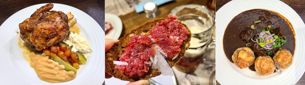 추천할 만한 이색적인 음식 첫 번째는 타르타르다. 체코식 육회라고 할 수 있다. 먼저 빵 위에 생마늘을 문지른 다음에 다진 육회를 펴서 발라 먹는다. 돼지 족발 같은 콜레노도 맥주와 함께 먹기 좋다. 싸고 양이 상당히 많다. 굴라쉬는 소고기로 만든 체코식 스튜다. 크네들리키라는 체코식 찐빵과 같이 먹는다.