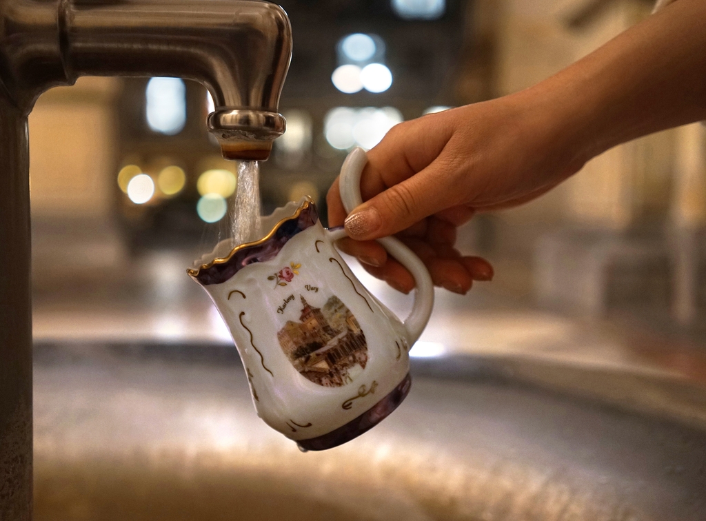 ▲ 도자기잔 '라제스키 포하레크'로 온천수 받기 [사진/진성철 기자]
