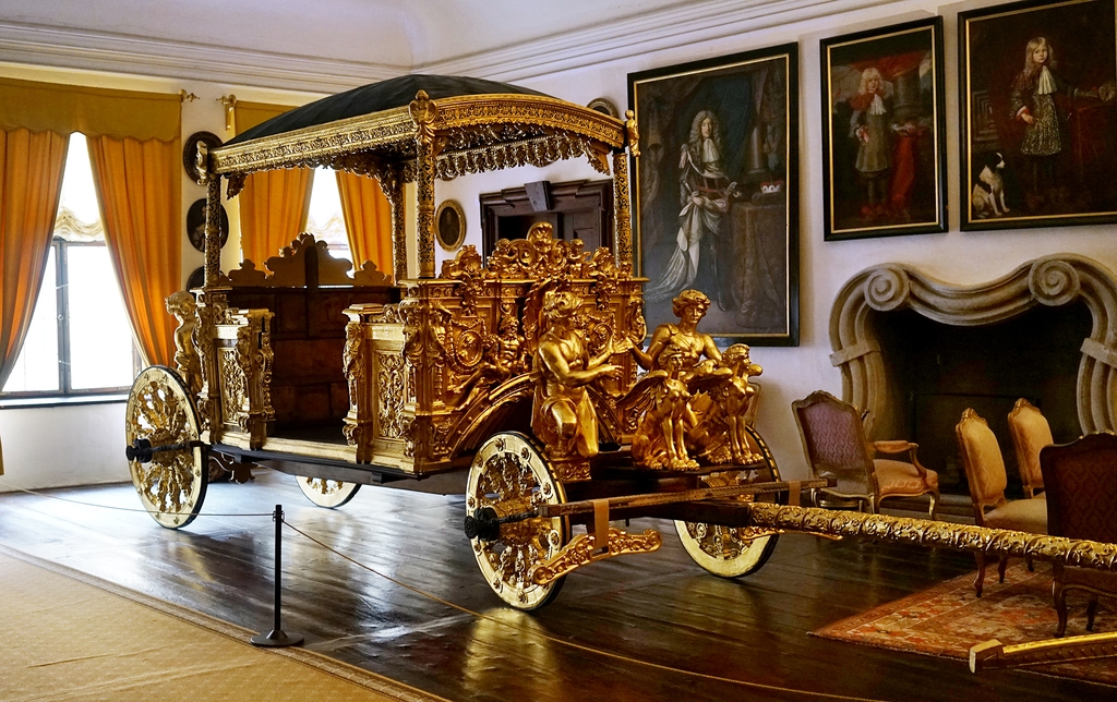 에겐베르크 일가의 초상화가 걸린 바로크 객실에는 휘황찬란한 황금마차가 있다. 실제 금박을 입혔다고 한다. 에겐베르크의 얀 안톤 1세가 1683년 외교사절로 로마 교황을 방문할 때 사용한 황금마차다.