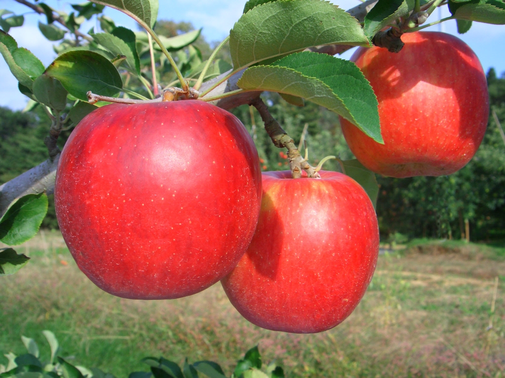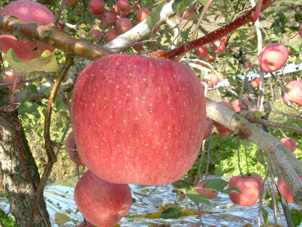 두 사과가 들어갈 즈음이면 부사가 등장합니다. 일본에서 개발된 품종으로, 야구공 정도 크기에 무게의 9∼11%가 당분으로 달고 맛있는 사과입니다.