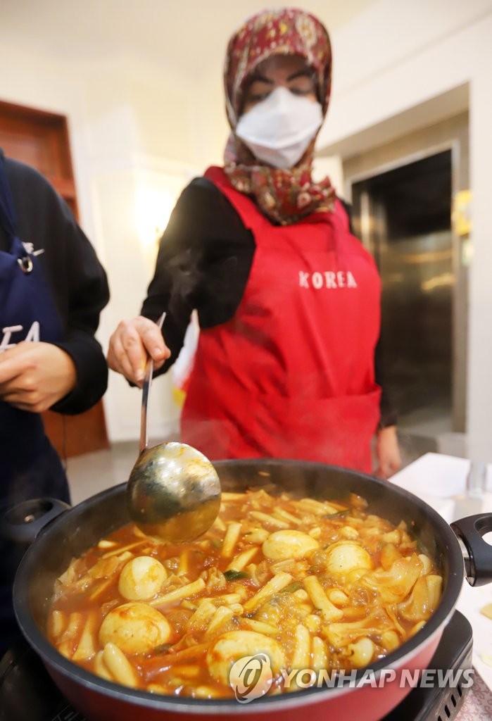 ▲ 떡볶이 만드는 이란인 (테헤란=연합뉴스) 이승민 특파원 = 17일(현지시간) 주이란 한국대사관에서 열린 '한국 문화 체험 행사'에서 이란인이 떡볶이를 만들고 있다. 2021.12.17 logos@yna.co.kr
