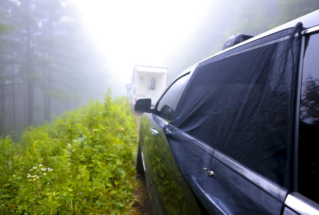 차량용 모기장을 꺼내 뒤편 창문에 씌웠다.