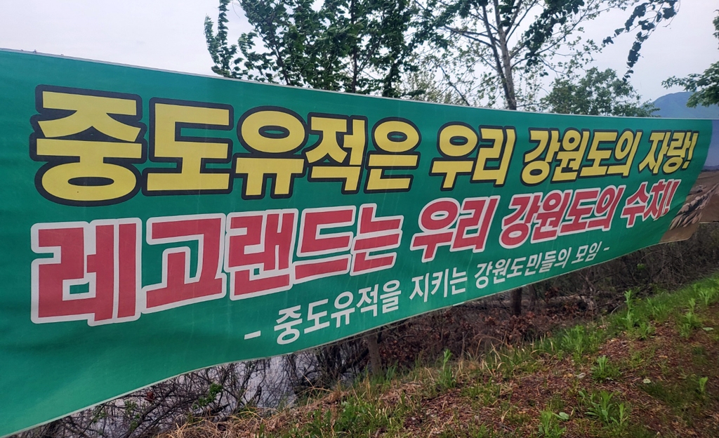 | ▲ 레고랜드 건설 반발 현수막 [촬영 이상학] |