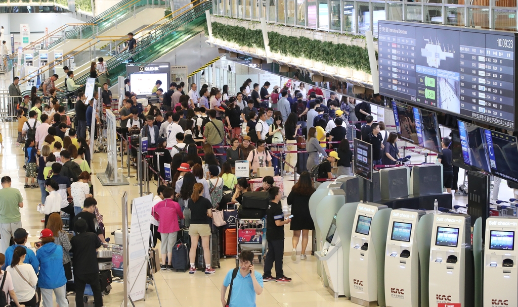 | ▲ 가까운 일본, 중국을 연결하는 국제선 기능이 2003년 부활했다. 붐비는 국제선 대합실. 2019년 [연합뉴스 자료사진] |