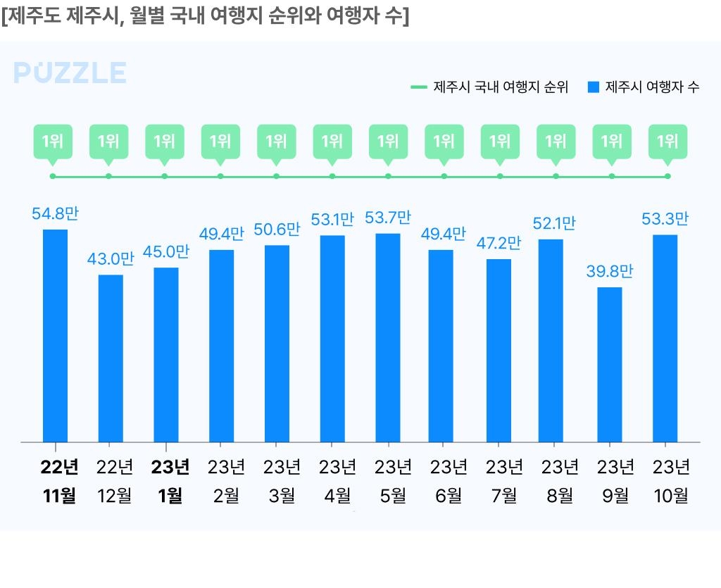 | ▲ 제주시 월별 국내 여행지 순위 [SK텔레콤 지오비전 퍼즐 제공. 재판매 및 DB 금지] |