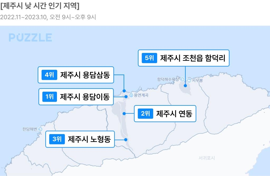 | ▲ 제주시 낮 시간 인기지역 [SK텔레콤 지오비전 퍼즐 제공. 재판매 및 DB 금지] |