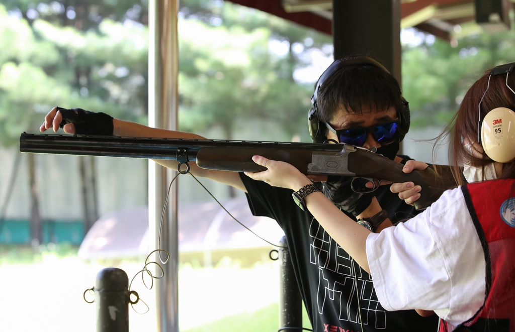 | ▲ 클레이 사격 체험장에서 한 방문객이 산탄총을 격발하고 있다. [사진/진성철 기자] |