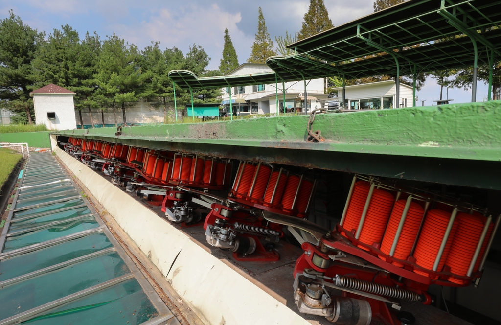 | ▲ 클레이 사격장의 트랩하우스에 설치된 클레이 방출기 [사진/진성철 기자] |