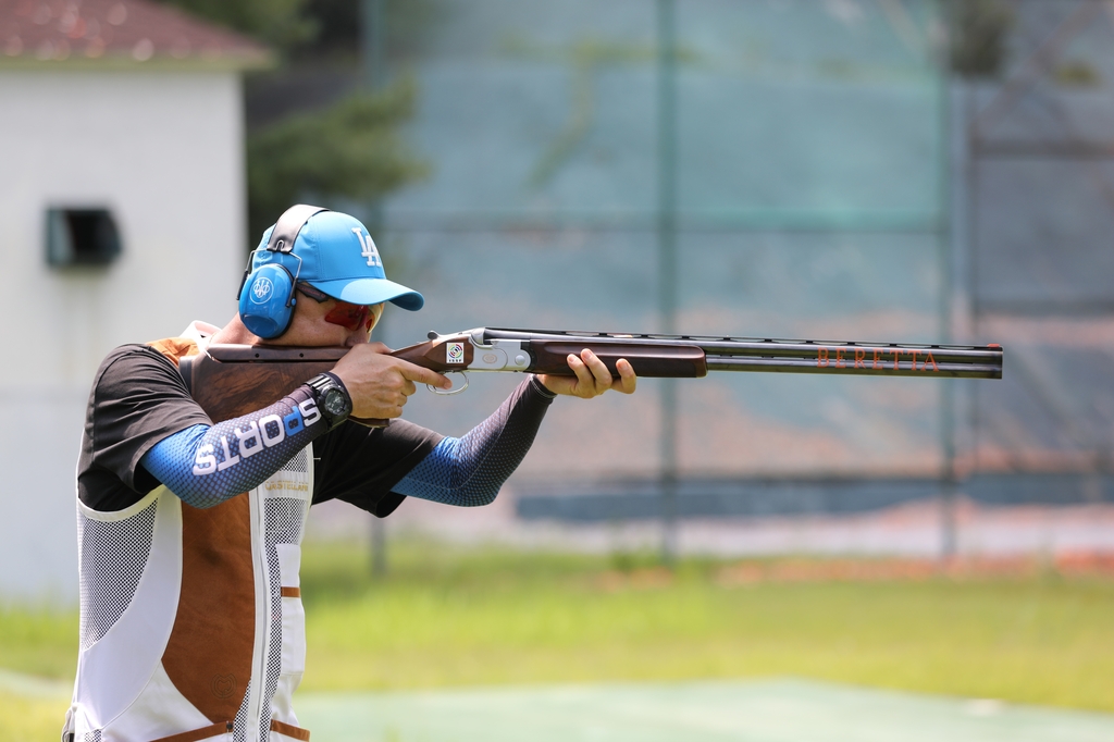 | ▲ 생활체육 대축전 클레이 트랩 부분 1위 경력의 김기태 씨가 클레이 사격 보이고 있다. [사진/진성철 기자] |