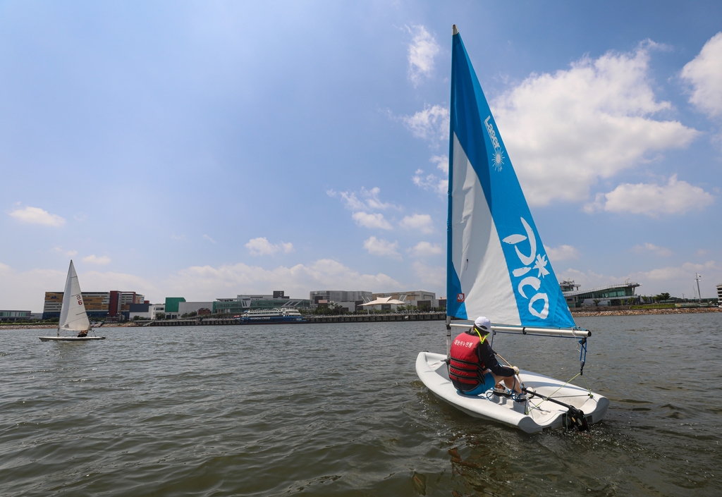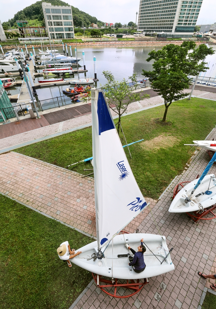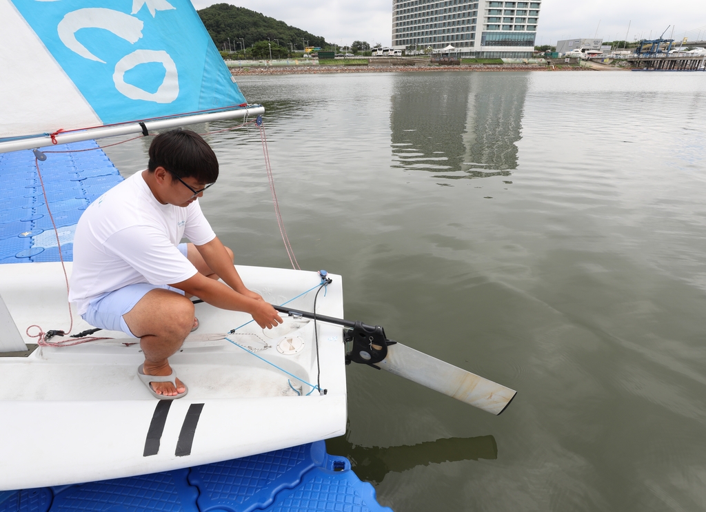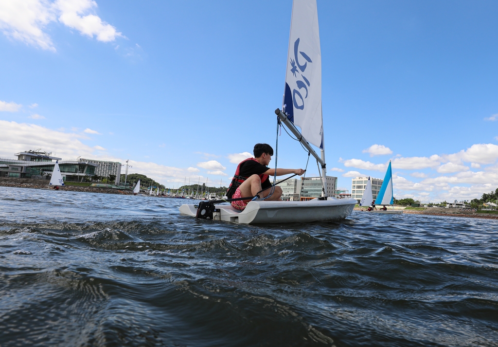 | ▲ 경기 김포시 아라마리나에 있는 경기요트학교에서 한 교육생이 딩기 요트를 배우고 있다. [사진/진성철 기자] |