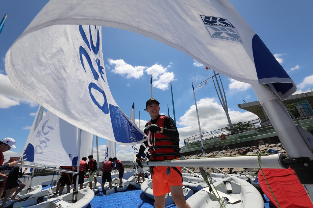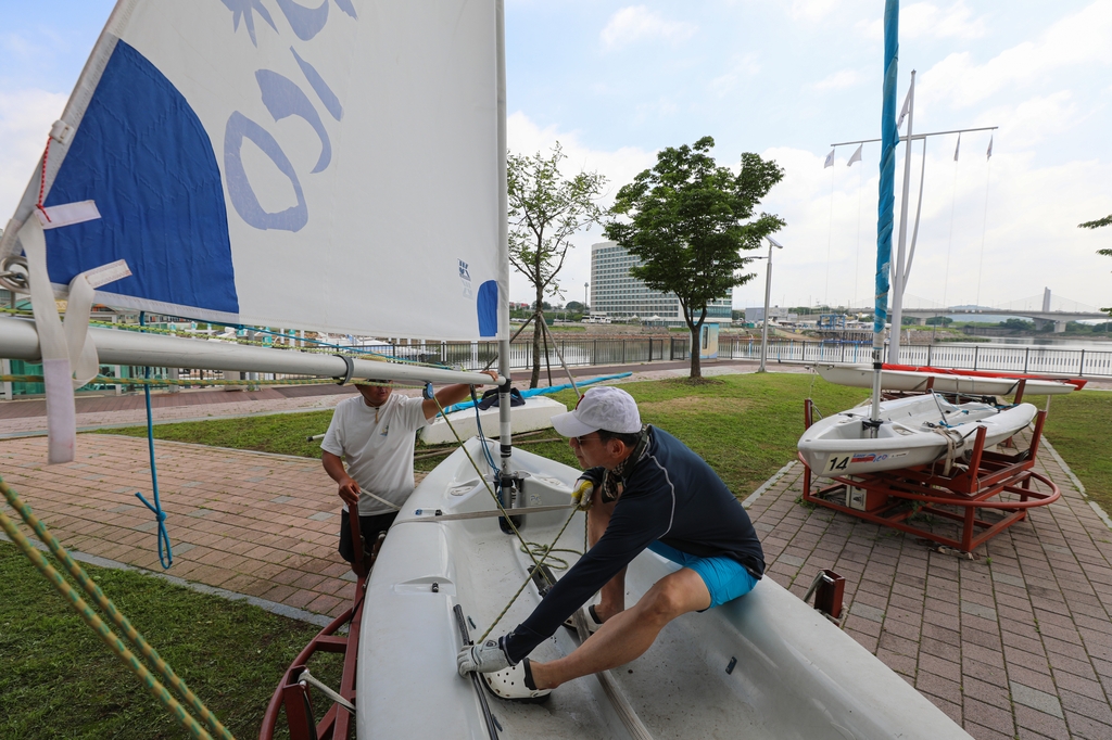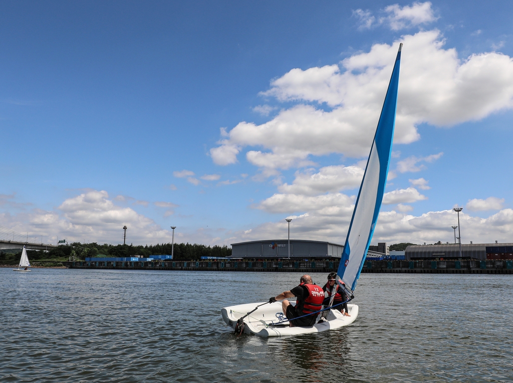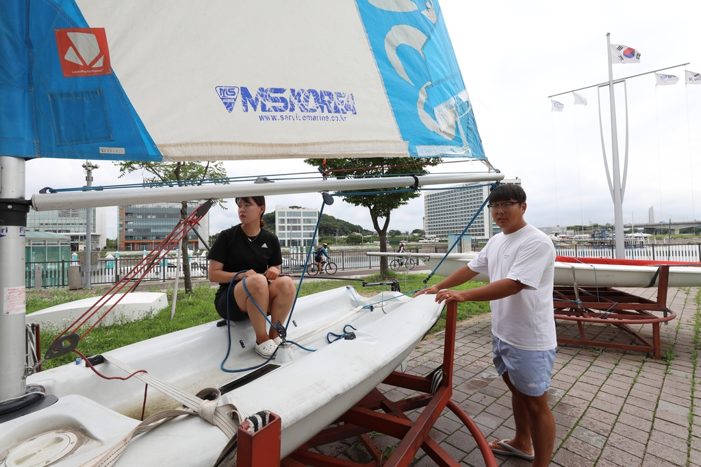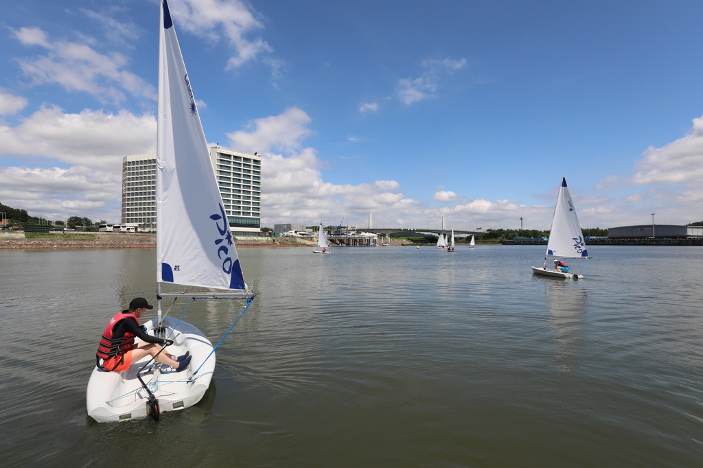 | ▲ 경기 김포시 아라마리나에 있는 경기요트학교에서 한 교육생이 딩기 요트를 배우고 있다. [사진/진성철 기자] |