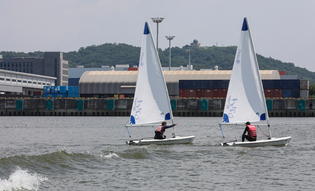 | ▲ 경기요트학교에서 교육생들이 딩기 요트를 배우고 있다. [사진/진성철 기자] |