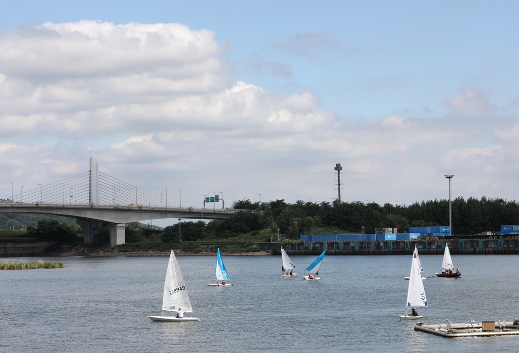 강 위에 띄워놓은 목표 지점 부표에 가려고 방향을 틀었다. 육상에서 배운 대로 먼저 뒷발을 내밀고, 뒷손으로 러더를 밀었다. 뱃머리가 몸쪽으로 돌았다. 세일 아래쪽을 받치는 붐(봉)이 얼굴 앞으로 다가오는 걸 보고 머리를 숙여 피했다. 세일이 앉은 쪽으로 넘어오자 요트가 갑자기 기울어졌다. 허둥지둥 엉덩이를 들어 몸을 반대편으로 옮겼다. 하지만 바람을 머금지 못한 세일이 금세 되돌아 넘어왔다. 황급히 선체 가운데로 움직여 어정쩡하게 앉았더니 요트는 제자리에 그냥 둥둥 떠 있기만 했다. 미풍이 불어오는데 방향을 쉽게 읽을 수가 없었다. 초보자에게 바람 방향은 아리송했다. 그래도 어찌어찌 다시 바람을 받은 세일이 펴지고 요트가 앞으로 나아갔다.