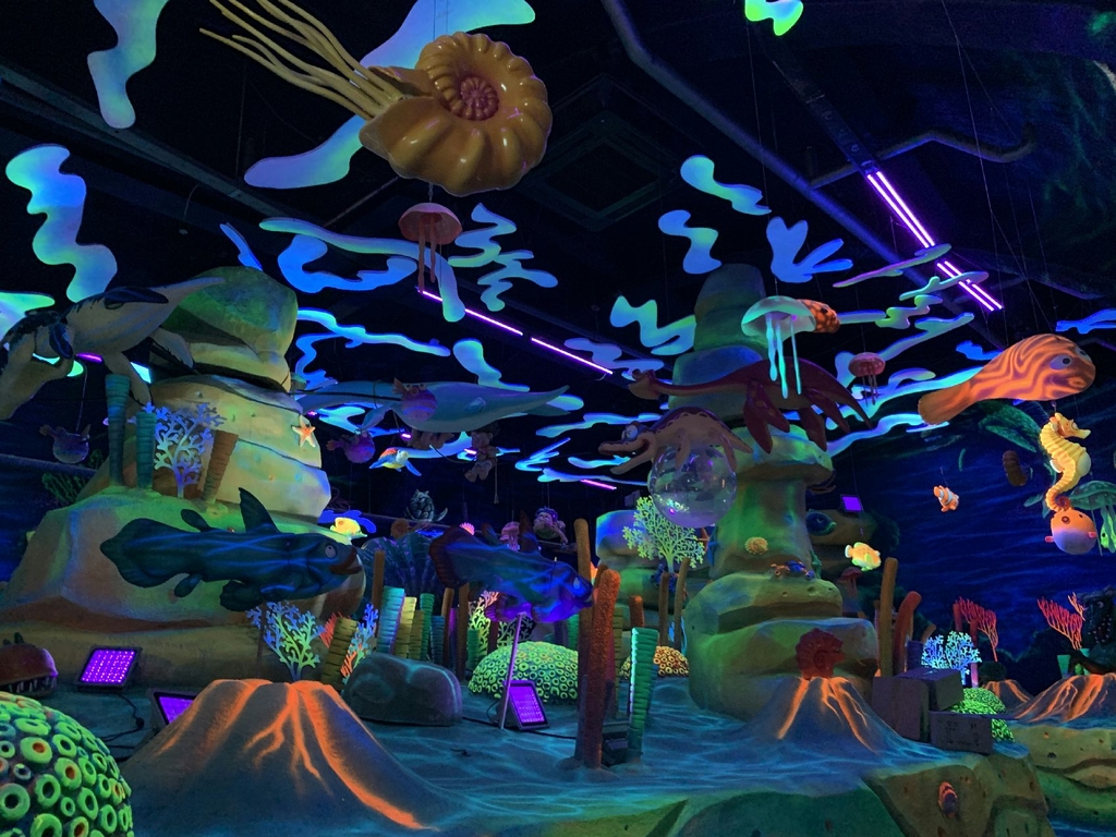 미디어아트 전시관인 공룡 놀이마을은 영상과 조명, 거울, 블랙라이트 등 3개 공간으로 구성했다.