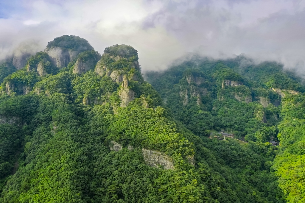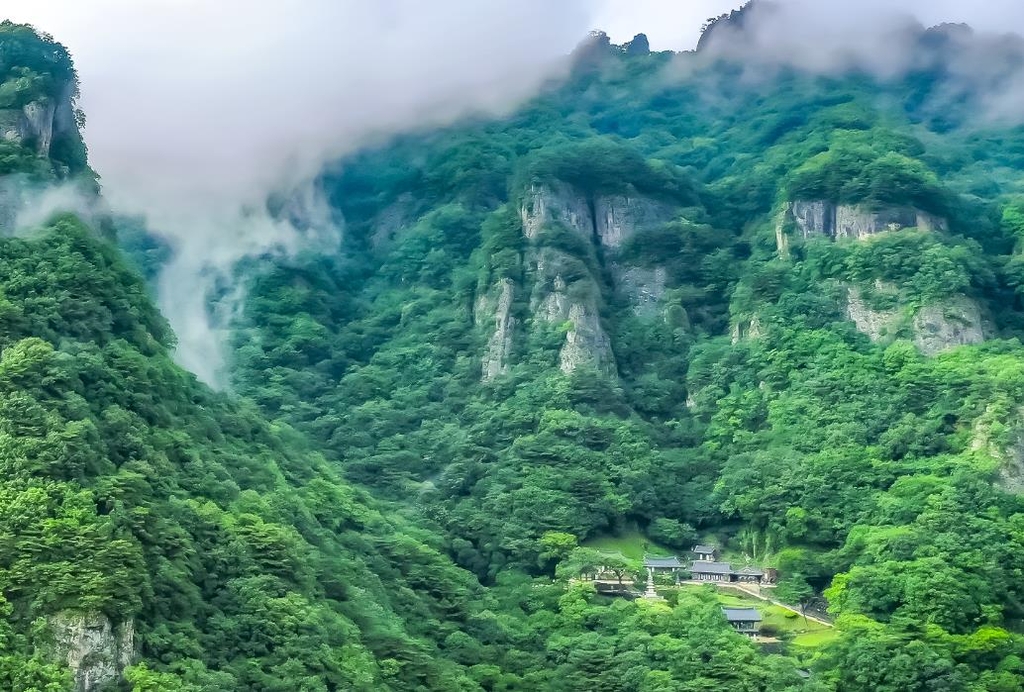 때마침 앞쪽 봉우리에 채 걷히지 않은 구름이 여러 겹으로 감겨 있다. 말 그대로 청량함 그 자체다.