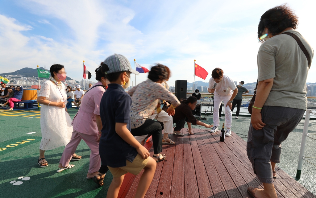 사회자가 '무궁화꽃이 피었습니다'를 시작했다. 한류드라마 '오징어 게임'에서처럼 목숨 걸린 게임은 아니었지만, 와인 한 병이 경품으로 걸린 놀이였다. 승객들은 '걷고 멈추고'를 반복하다 마지막 순간엔 와인을 먼저 움켜잡으려다 넘어지기도 했다. 그리곤 모두 깔깔댔다.