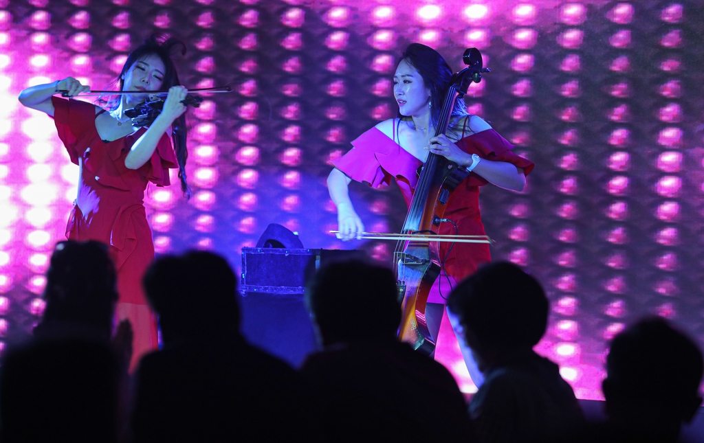 | ▲ 연주자들이 일렉트릭 현악 연주로 청중의 환호를 이끌고 있다. [사진/진성철 기자] |