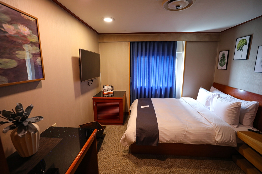 객실은 총 122실. 바다를 바라볼 수 있는 바다 전망 구역과 배 안쪽에 있는 선내 구역으로 나뉜다. 객실 쪽 로비에는 안전한 이동을 위해 벽면에 손잡이가 있다. 파도가 잔잔한 날 객실 안에 있으면 배 안인지 육지인지 잘 모를 정도다.