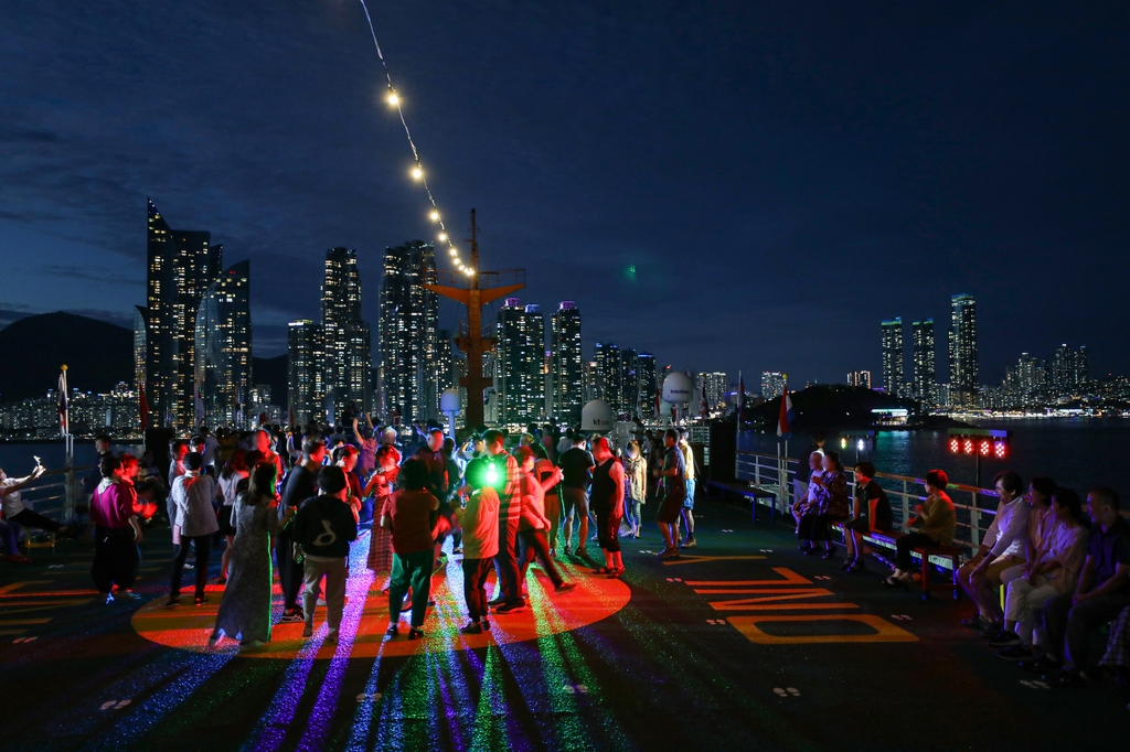 지금은 '흔드는 시간'. 탁 트인 하늘 아래이자 바다 위 크루즈 갑판에서 사이키 조명이 반짝반짝 돌았다. 디제이가 들려주는 신나는 댄스음악에 승객들은 몸도 흔들고 마음도 흔들었다. 나이를 잊고 청춘으로 돌아간 듯 신이 났다.