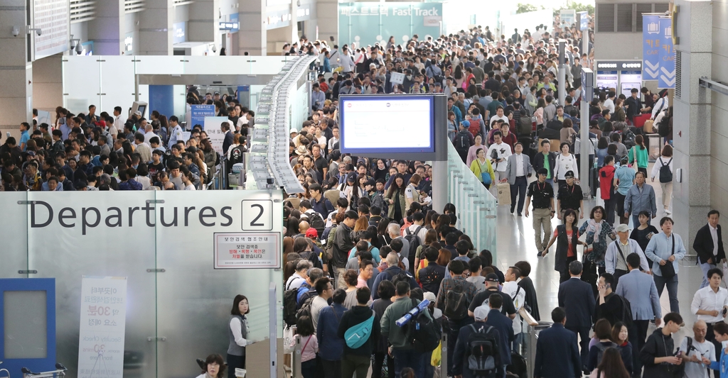 | ▲ 추석 연휴를 맞아 인천공항 여객터미널 출국장이 여행객들로 붐비고 있다. 2017년 [연합뉴스 자료사진] |