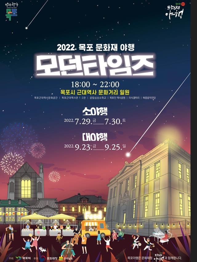 목포시는 5년 연속 문화재청 문화재 활용사업으로 추진 중인 '2022 목포 문화재 소(小)야행'을 29∼30일 근대역사문화공간 일원에서 개최한다.
