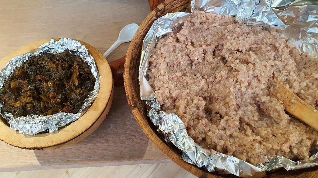 | ▲ 남아공 종족 전통 음식 (프리토리아=연합뉴스) 김성진 특파원 = 20일(현지시각) 주남아공 한국문화원에 마련된 남아공 흑인 종족 전통 음식의 하나. 이 자리에는 누에를 그대로 삶은 쫑가 종족 음식을 비롯해 다양한 남아공 전통음식이 선보였다. 2022.5.20 sungjin@yna.co.kr |