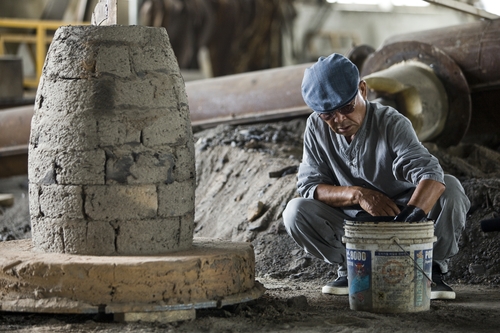 "쇠에 생긴 기포는 마감재를 입혀 매끈하게 메꿀 수 있다지만, 그러면 제대로 된 소리가 나겠어. 그래서 용광로 불을 끄는 거야. 하늘이 허락할 때를 기다리는 거지."