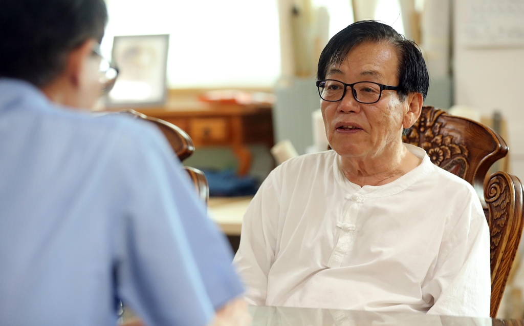 | ▲ 인터뷰하는 단청장 기능 보유자 권현규씨 (청주=연합뉴스) 천경환 기자 = 인터뷰하는 충북도 무형문화재 제9호 단청장 기능 보유자 권현규씨. 2022.8.19.