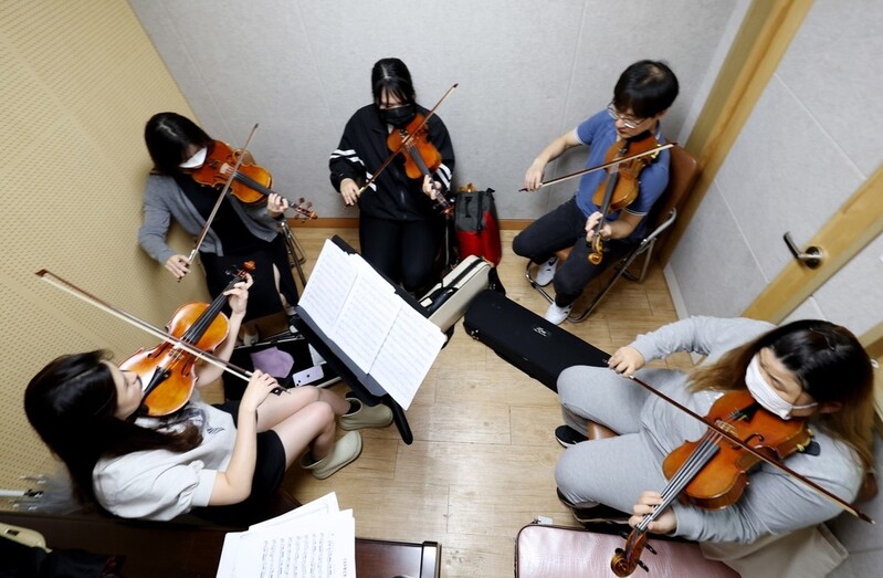 | ▲ 바이올린 연습하는 단원들 [촬영 김상연] |