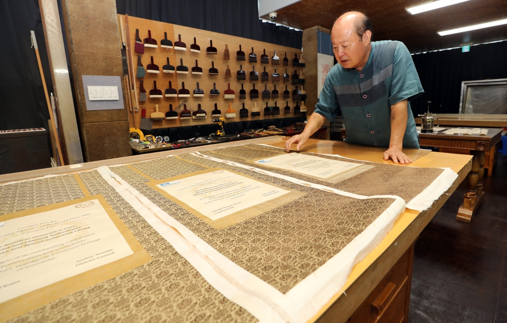 전통 기법으로 문화재 1천여 점에 배첩…1999년 무형문화재 지정