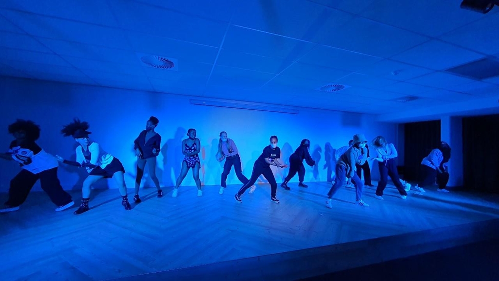 | ▲ 'K-팝 댄스는 이렇게 하는 거야' (프리토리아=연합뉴스) 김성진 특파원 = 27일(현지시각) 주남아공한국문화원에서 공연하는 현지 강사와 친구들. 2022.5.28 sungjin@yna.co.kr |