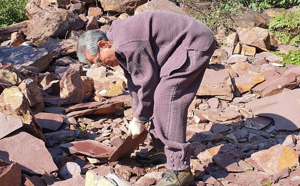 광산에서 채취한 돌은 망치로 두드려 '쨍쨍' 맑은 소리를 내는 것을 골라낸다.